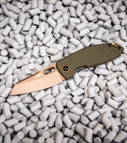 This exclusive Desert Warrior edition CRKT Sketch model has a copper finished D2 blade and an OD Green G-10 handle.