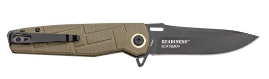 The Elite Tactical Readiness boasts a 3.5" drop point blade made from 8Cr13 stainless steel with a black finish. A spring-assisted mechanism ensures quick deployment, while the tan injection molded nylon fiber handle offers durability and grip. Includes a liner lock for safety. Measures 8" overall—ideal for EDC, tactical use, or outdoor tasks.