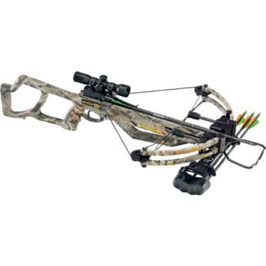 Parker Enforcer Crossbow Package includes: crossbow, 4X multireticle scope, four-arrow quick-detach quiver and four 20" 400-grain arrows with field points.