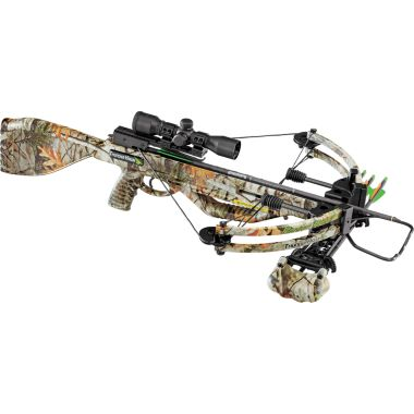 Parker ThunderHawk Crossbow Package includes: Crossbow, 3X multireticle scope, quick-detach four-bolt quiver and four 20" 400 grain bolts with practice points.